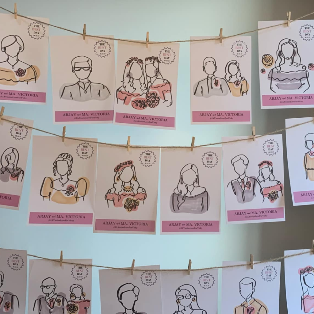 I sketch each guest in minutes, using your preferred style: Basic Line Art, Watercolor Splash, Abstract Shapes, or Digital.
